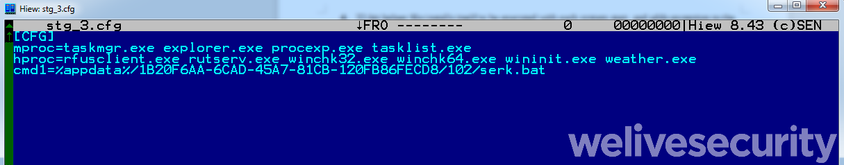 Naravno, lista procesa koji će biti sakriveni većinom pripada BalkanRAT-u. Ipak, takođe nalazimo neka imena kao "weather.exe" ili "preserve.exe" na listi – ona pripadajau BalkanDoor backdoor-u. Ovo potvrđuje uverenja da su ova dva alata zaista korišćeni zajedno.
