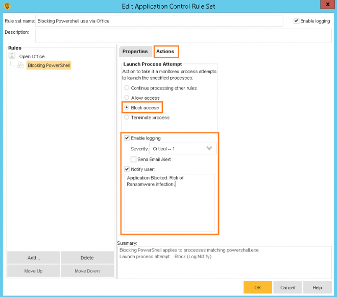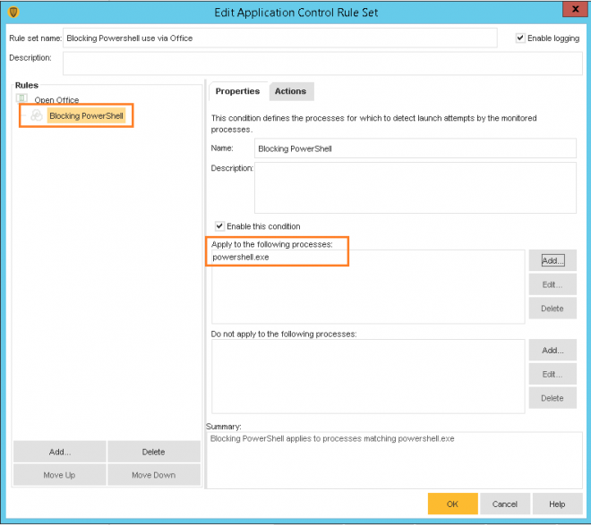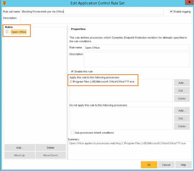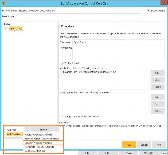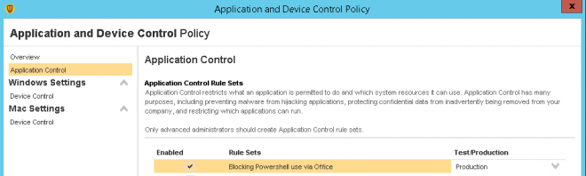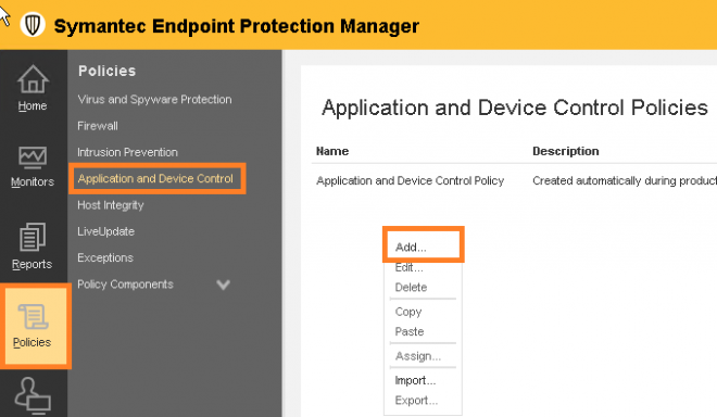 Ukoliko koristite Symantec Endpoint Protection opcionu komponentu pod nazivom ’Application And Device Control’, možete sprečiti da maliciozni atačment u Wordu, Excelu ili nekom drugom Office dokumentu pristupi PowerShellu ili cmd. U sledećih nekoliko slika sledi uputstvo kako da sami konfigurišete takvu polisu.