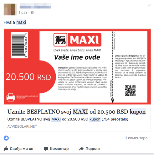 Trenutno su aktuelni i dele se na Facebooku i lažni Idea kuponi, identični kao Maxi kuponi: